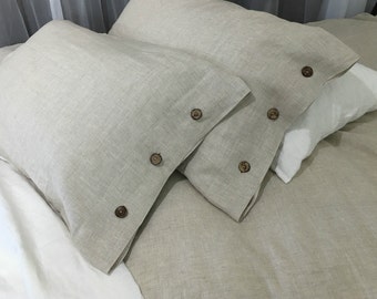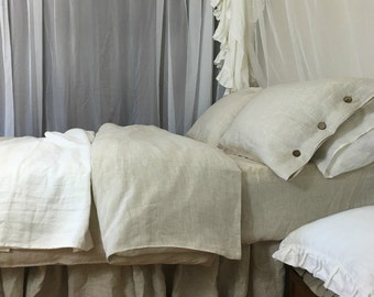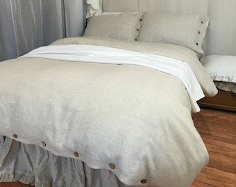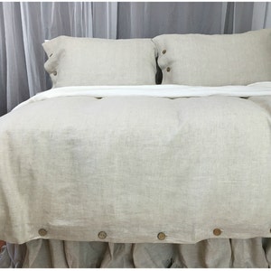 Natural Linen Duvet Cover With Wood Button Closure Washed Etsy