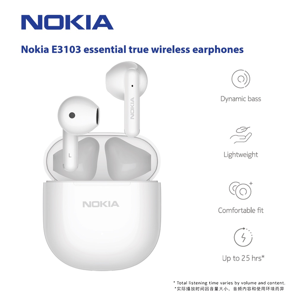 Nokia E3103 White Wireless Earphones Tws 25h Battery Siri And Google Assistant Ipx4 Weatherproof Design Shopee Philippines